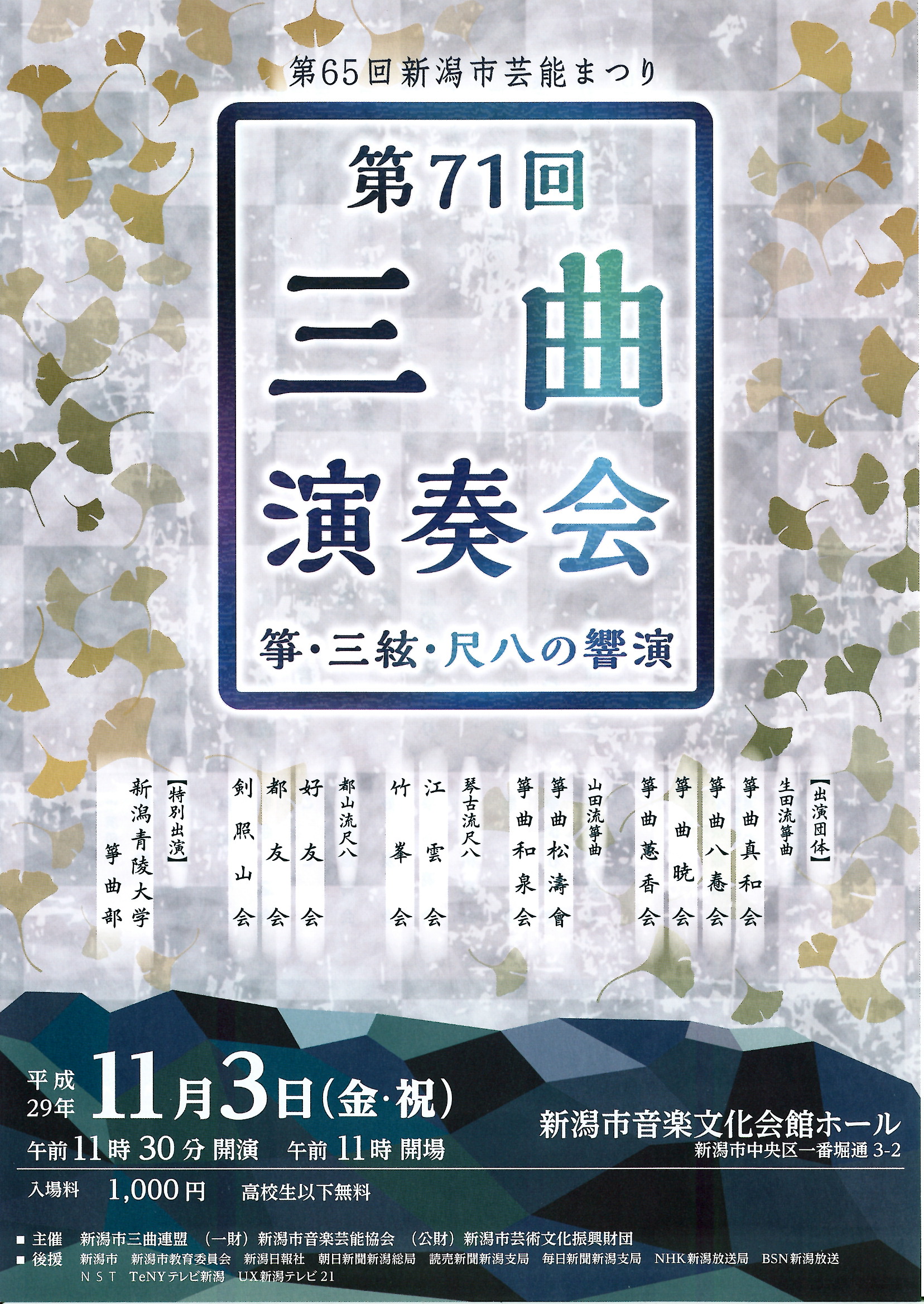 第65回新潟市芸能まつり 第71回三曲演奏会 箏・三絃・尺八の響演 |