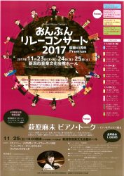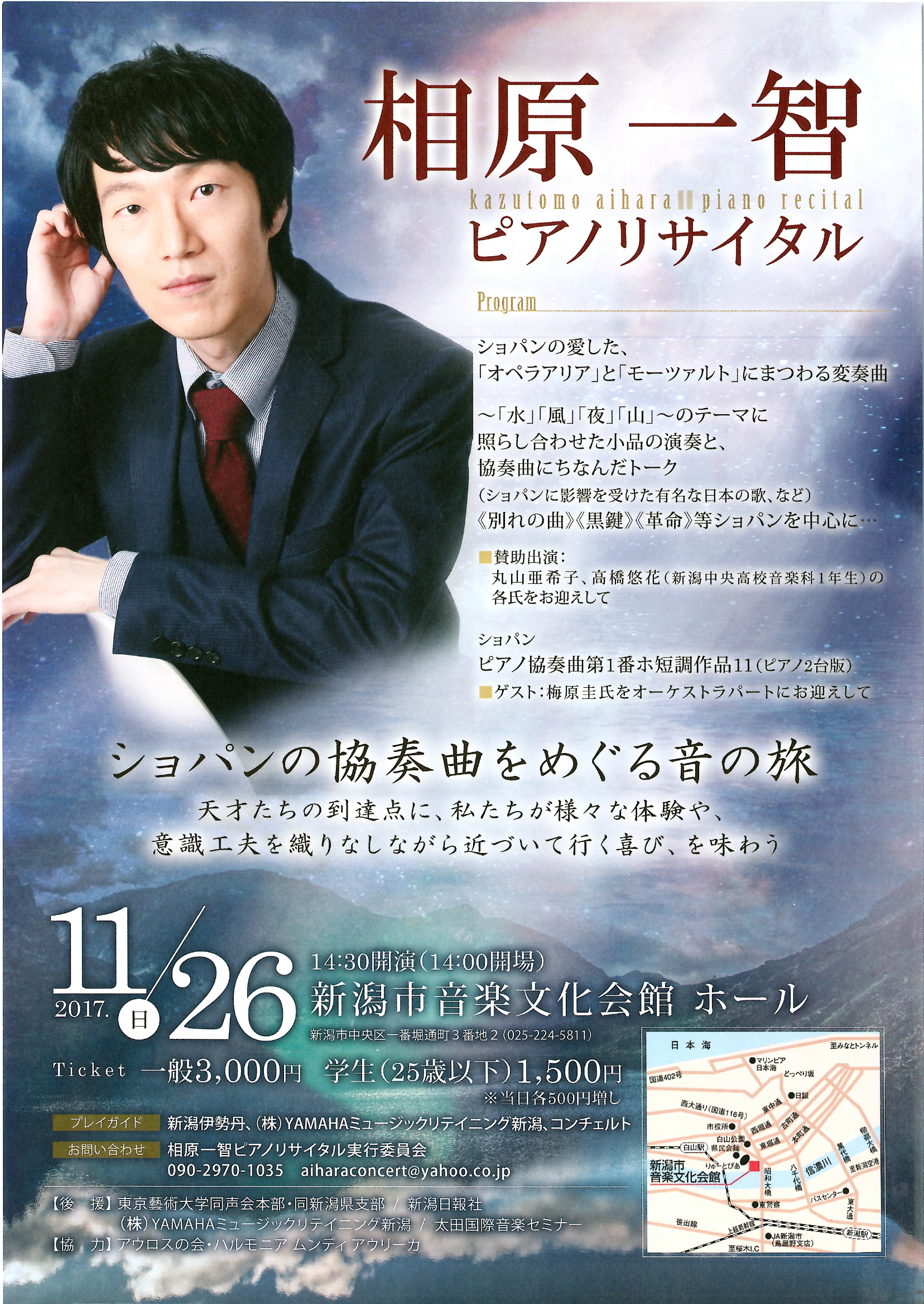 全席自由 1,000円 11/23りゅーとぴあコンサートホールで開催されるピアノ・リサイタル購入者割引 500円 ※リサイタルチケット購入時に割引券をお渡しします。 |