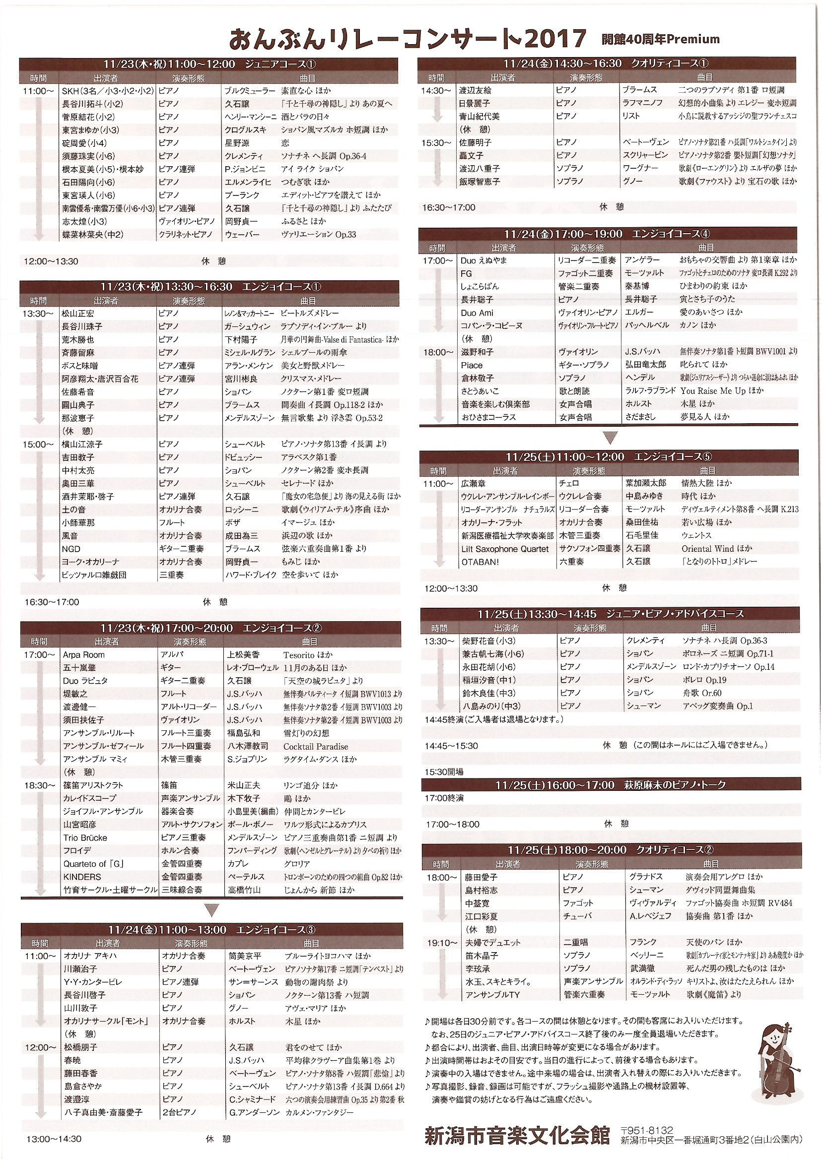 無料 | 新潟市高等学校音楽連盟 (万代高・森) 025-241-0193 |