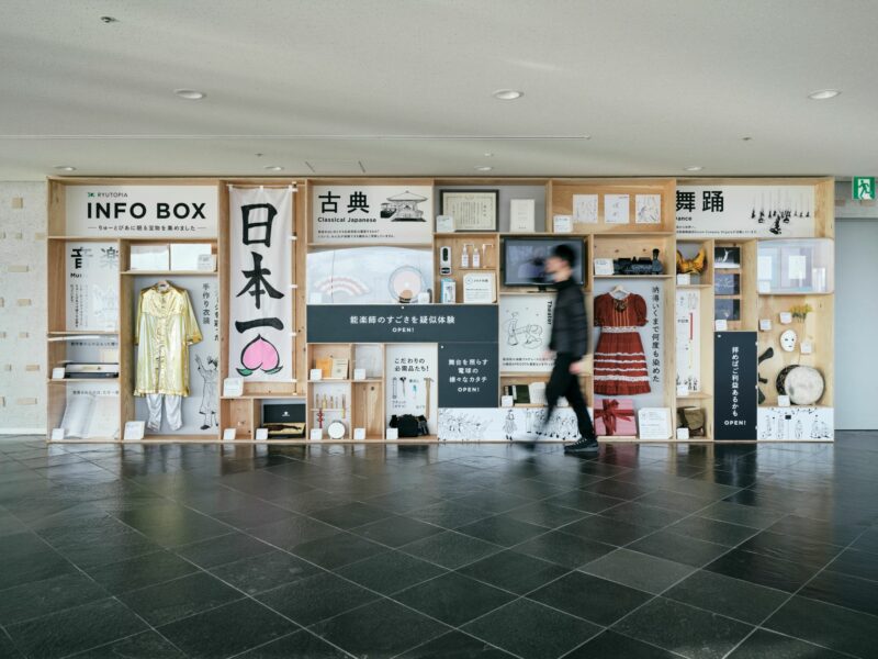 りゅーとぴあに眠る宝物の数々を、お客様にもご覧いただきたい。アイテムを通して、私たちの取り組みを知ってほしい。そんな思いから、新しい情報発信スペース「りゅーとぴあINFO BOX」を設置しました。2021年3月11日より当館6F展望ラウンジにて公開されています。